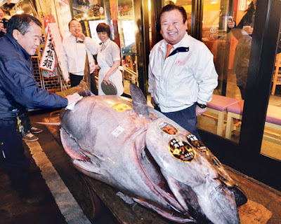 Ikan tuna gergasi dilelong RM2.3 juta Posted: 05 Jan 2012 05:36 PM PST KIYOSHI KIMURA (kanan) bergambar di sebelah ikan tuna gergasi di pasar ikan Tsukiji, Tokyo semalam. TOKYO - Seekor ikan tuna gergasi sirip biru seberat 269 kilogram (kg) yang ditangkap di luar perairan wilayah Aomori, utara Jepun mencipta rekod apabila dilelong dengan harga 56.49 iuta yen (RM2.3 juta) pada lelongan pertama hidupan laut itu dalam tahun ini. Menurut agensi berita AFP, ikan itu dibeli oleh presiden sebuah syarikat yang mengendalikan rangkaian restoran popular Zushi-Zanmai, Kiyoshi Kimura. "Saya mahu memenangi ikan tuna yang terbaik supaya pelanggan Jepun dan bukan pelanggan dari luar negara yang akan menikmatinya," kata Kimura. Dia merujuk kepada seorang pemilik restoran sushi di Hong Kong yang membeli seekor ikan tuna sirip biru yang dilelong pada harga 32.49 juta yen (RM1.32 juta) di Tsukiji, Jepun. Penduduk Jepun makan tiga suku daripada ikan tuna yang ditangkap di seluruh dunia. - AFP | ||||