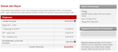 | Tips untuk beli tiket Air Asia online dengan murah Posted: 18 Apr 2012 03:49 AM PDT Jom   pergi melancong! hehe. Kali ni nak share cara beli tiket flight dengan   cara yang murah. Panduan ini sangat berguna untuk mereka yang terbang   dengan kos yang rendah.Amir dapat nie dari satu laman web tu.. Korang tahu perbezaan Malaysia Airlines (MAS) dengan AirAsia?   Dari segi harga tiketnya, MAS lebih mahal dari AA kan? Sebab apa  mahal?  Sebab AA syarikat penerbangan tambang murah la kehkehkeh.  Dengan   AA kita boleh pilih servis yang kita nak. Macam yang akan aku  tunjukkan  ni, aku nak book tiket ke Penang. Untuk dapatkan harga  serendah yang  mungkin, aku tak check in bagasi sebab korang boleh bawa  beg naik tapi  tidak lebih dari 15kg, kalau lebih, terpaksa lah korang  check in  luggage.    1.   Selepas pilih penerbangan, korang kena isi butiran peribadi dan korang   boleh pilih nak daftar masuk bagasi atau tak. Aku tak bawa banyak   barang, so jimat sikit duit. hehe Malah tu!  2.   Kemudian, korang akan diberi pilihan untuk pilih tempat duduk. Tapi   kena bayar RM30 WOW! mahal gak tu. Macam aku, tak nak bayar lebih so aku   klik pada ikon seat tu. Ingat ye! kalau korang terus proceed   tanpa remove selected seat tu, korang akan kena bayar RM30. Ramai yang   tak perasan benda ni.   3.   Insuran ni penting, tapi korang diberi pilihan nak ambil or tak. Aku   rasa insyaAllah tak ada apa-apa berlaku  lagi pun ke Penang je hehe.   Kalau ke oversea kena lah kan. So kalau korang tak nak, klik je pada   batal/cancel macam yang dibulatkan tu. Kemudian akan keluar satu pop-up,   klik CANCEL jugak.  4.   Kemudian korang boleh pilih perkhidmatan tambahan untuk SkyBus untuk  ke  LCCT. Boleh naik di KL Sentral atau One Utama. Diskaun sebanyak 35%   kalau korang beli online.  Perjalanan ke LCCT dari KL Sentral (dan pulang) hanya dengan RM7.20 sehala dan RM14.40 bagi perjalanan pergi balik. Perjalanan ke LCCT dari 1Utama (dan pulang) hanya dengan RM11.99 sehala dan RM23.98 bagi perjalanan pergi balik. Bagi menaiki bas, anda hanya perlu mencetak dan menunjukkan jadual perjalanan di gerai Skybus atau di platform bas.  Klik di sini untuk jadual Skybus LCCT - KL Sentral.Klik di sini untuk jadual Skybus LCCT - 1Utama. Tapi aku tak amik la servis SkyBus ni, sebab dah ade driver hantar hehe. Lagi jimat :)  5.   Ini lah jumlah penerbangan aku ke Penang. Murah kan? Naik bas ekspres   2x ganda kot kan? masa pun banyak terbuang. Dengan AA, walaupun tambang   murah, namun tetap selesa. RM 29.00 ni merangkumi cukai airport RM6  dan  caj bahan api RM10 je.  6.   Then, proceed dengan pembayaran secara online. Jangan guna kad kredit,   sebab ada caj. Tak pasti berapa caj dia. Macam aku, guna CIMB clicks  je  :) -         t5crew.blogspot.com- | ||
